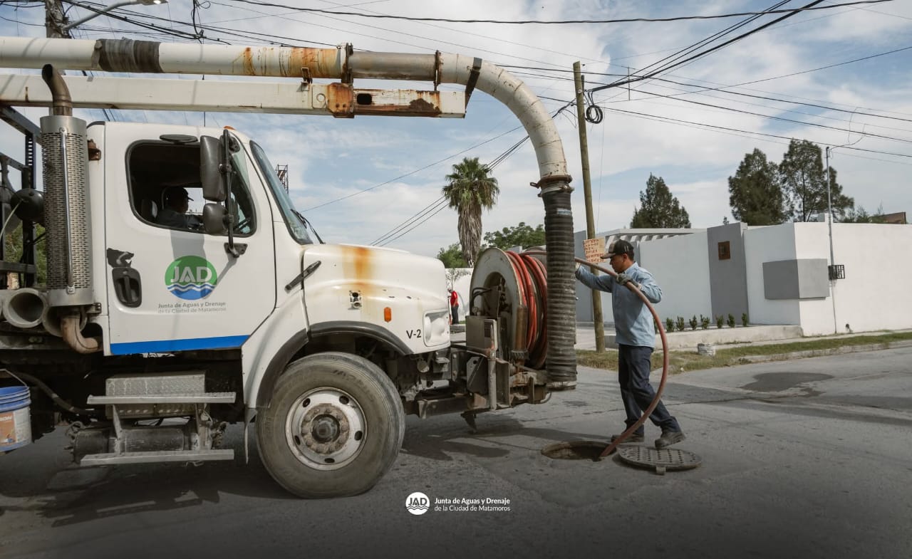 H. Matamoros, Tamaulipas.- El Gobierno Municipal de Matamoros, a través de la Junta de Aguas y Drenaje, continúa trabajando en acciones preventivas para evitar encharcamientos y taponamientos durante la temporada de lluvias, por ello se realizan labores de limpieza y desazolve con el camión Vactor en distintos sectores de la ciudad.