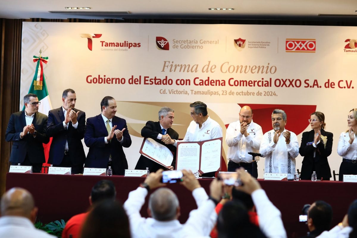 FIRMAN CONVENIO GOBIERNO DE TAMAULIPAS Y OXXO PARA FORTALECER SEGURIDAD
