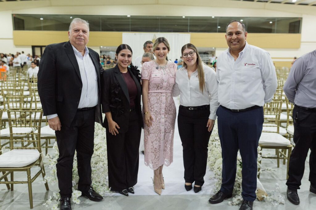 Durante la ceremonia, la Presidenta de DIF Matamoros Ana Ariceaga de Granados, expresó un emotivo mensaje felicitando a las parejas y manifestando su alegría al ver a cientos de personas comprometidas para contraer nupcias no solo en amor, si no también bajo el marco de la legalidad que brinda seguridad jurídica a las familias.