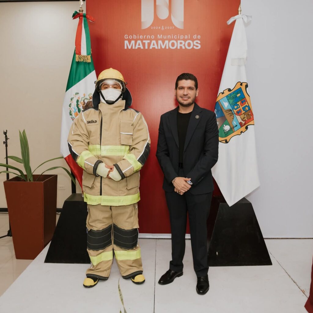 En este marco, se entregarán más de 30 uniformes nuevos para nuestros bomberos; un equipo completo que incluye chaqueta, pantalón, casco, guantes, botas y gorro protector. Cada pieza simboliza la gratitud hacia quienes arriesgan su vida por salvaguardar a las familias de Matamoros.