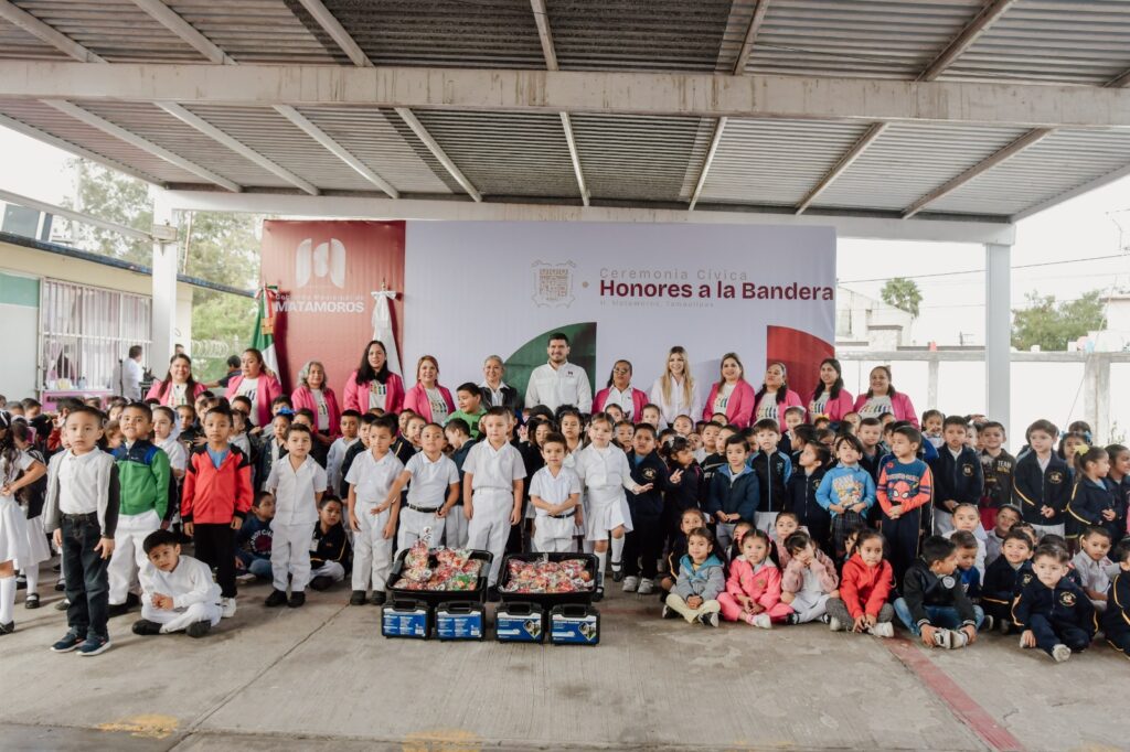 Por su parte la presidenta del Sistema DIF Matamoros como cada lunes de honores, reitera su compromiso a favor de la niñez, destacando la importancia de inculcar desde edades pequeñas los valores cívicos.