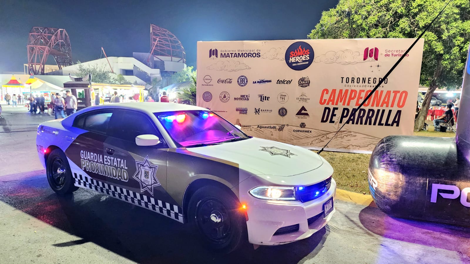 H. Matamoros, Tamaulipas.- Por instrucciones del alcalde Beto Granados, elementos de Seguridad Pública se encuentran presentes en el evento “Somos Héroes Grill Championship”, con el propósito de garantizar la armonía, el orden y la seguridad de todos los asistentes.