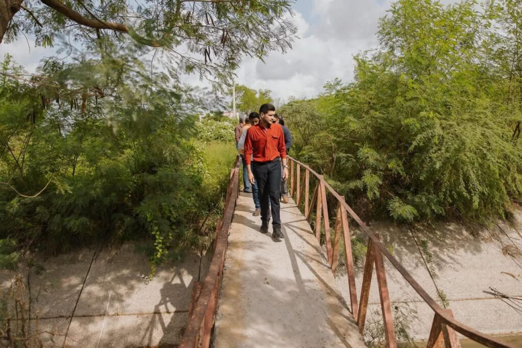 El presidente municipal de Matamoros, Beto Granados, anunció el compromiso de su gobierno para construir un nuevo puente, seguro y digno, que permitirá a más de 35 estudiantes llegar a sus clases sin problema alguno.