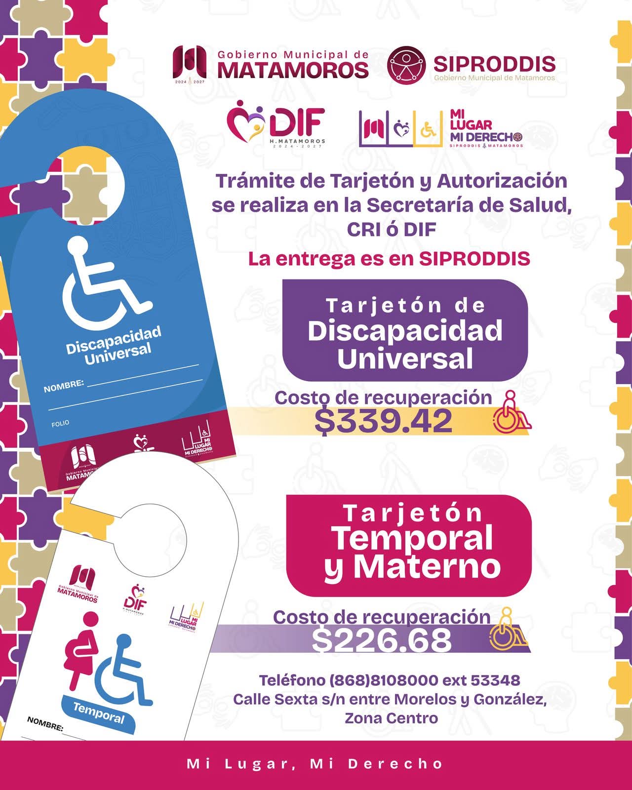 Matamoros, Tam.- El Gobierno de Beto Granados continúa fortaleciendo el renacimiento de Matamoros con acciones que promueven la igualdad de oportunidades y el acceso pleno a los derechos. A través de la Secretaría de Salud, el CRI y el DIF, se invita a las y los ciudadanos a tramitar su Tarjetón de Discapacidad Universal, Temporal o Materno, un documento que garantiza el derecho a la movilidad y contribuye a una ciudad verdaderamente inclusiva.