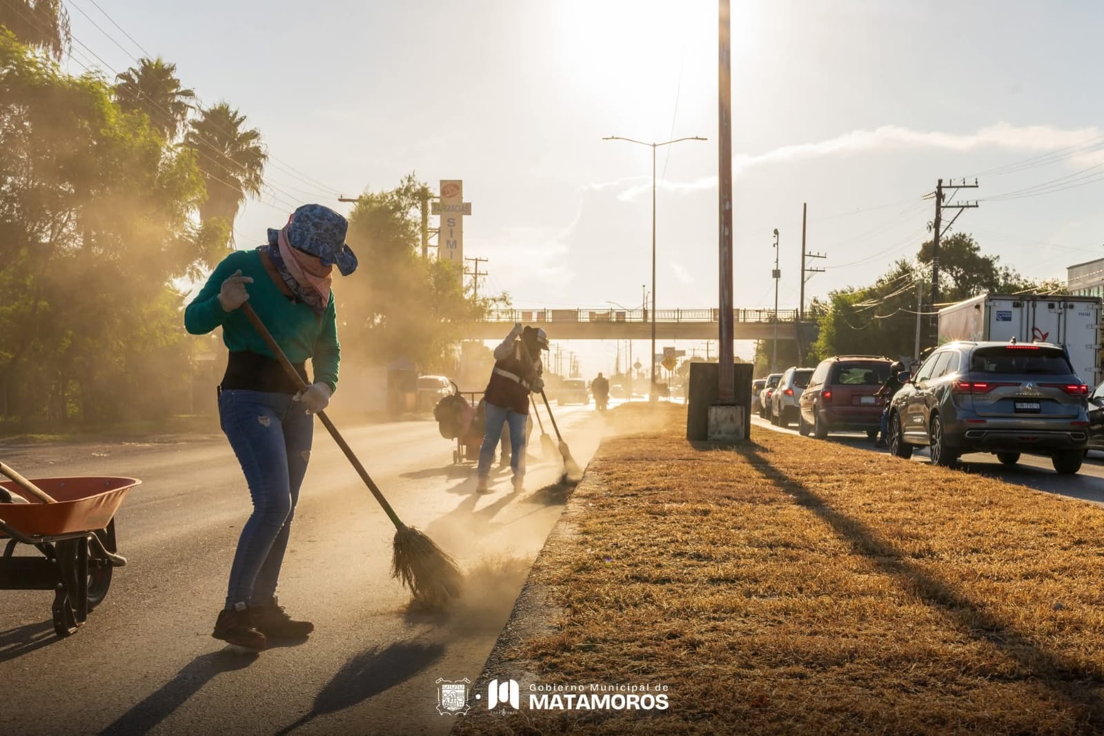 Matamoros, Tam.- El Gobierno de Beto Granados informó que cada acción cuenta cuando se trata de mantener limpia la ciudad. En este sentido, este día se llevaron a cabo trabajos de limpieza en diversos espacios públicos y vialidades de Matamoros.