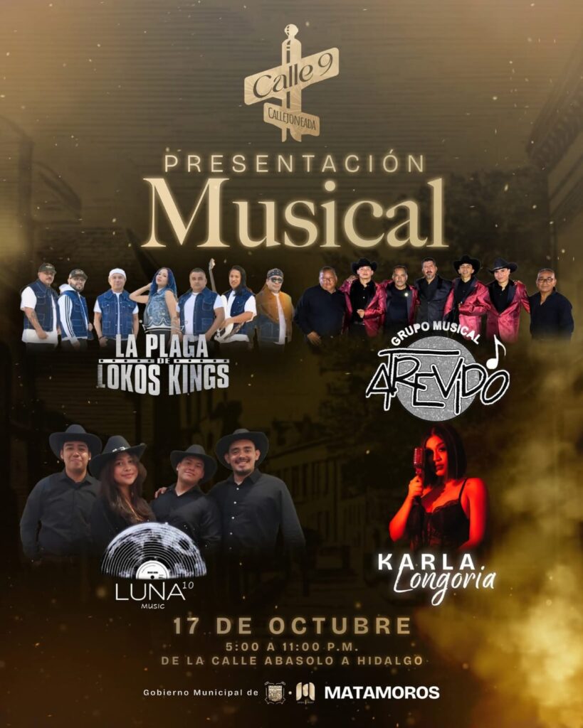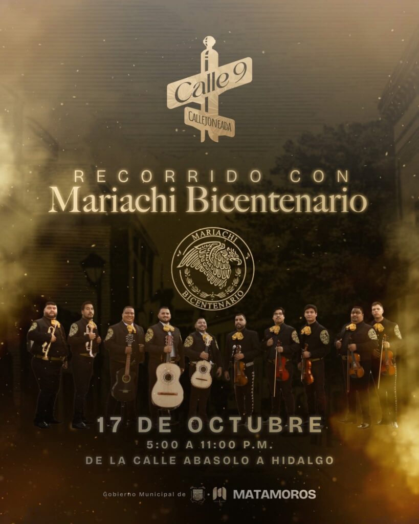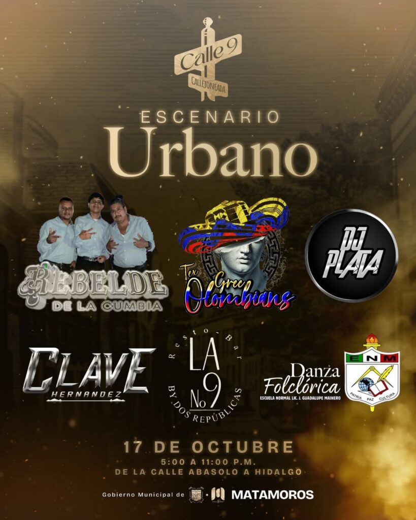 Matamoros, Tam.– El Gobierno de Beto Granados invita a la ciudadanía a disfrutar este viernes 17 de octubre de una nueva edición de la Callejoneada, un evento lleno de música, cultura y convivencia familiar que se llevará a cabo sobre la Calle 9, desde Abasolo hasta Hidalgo, en un horario de 5:00 p.m. a 11:00 p.m.