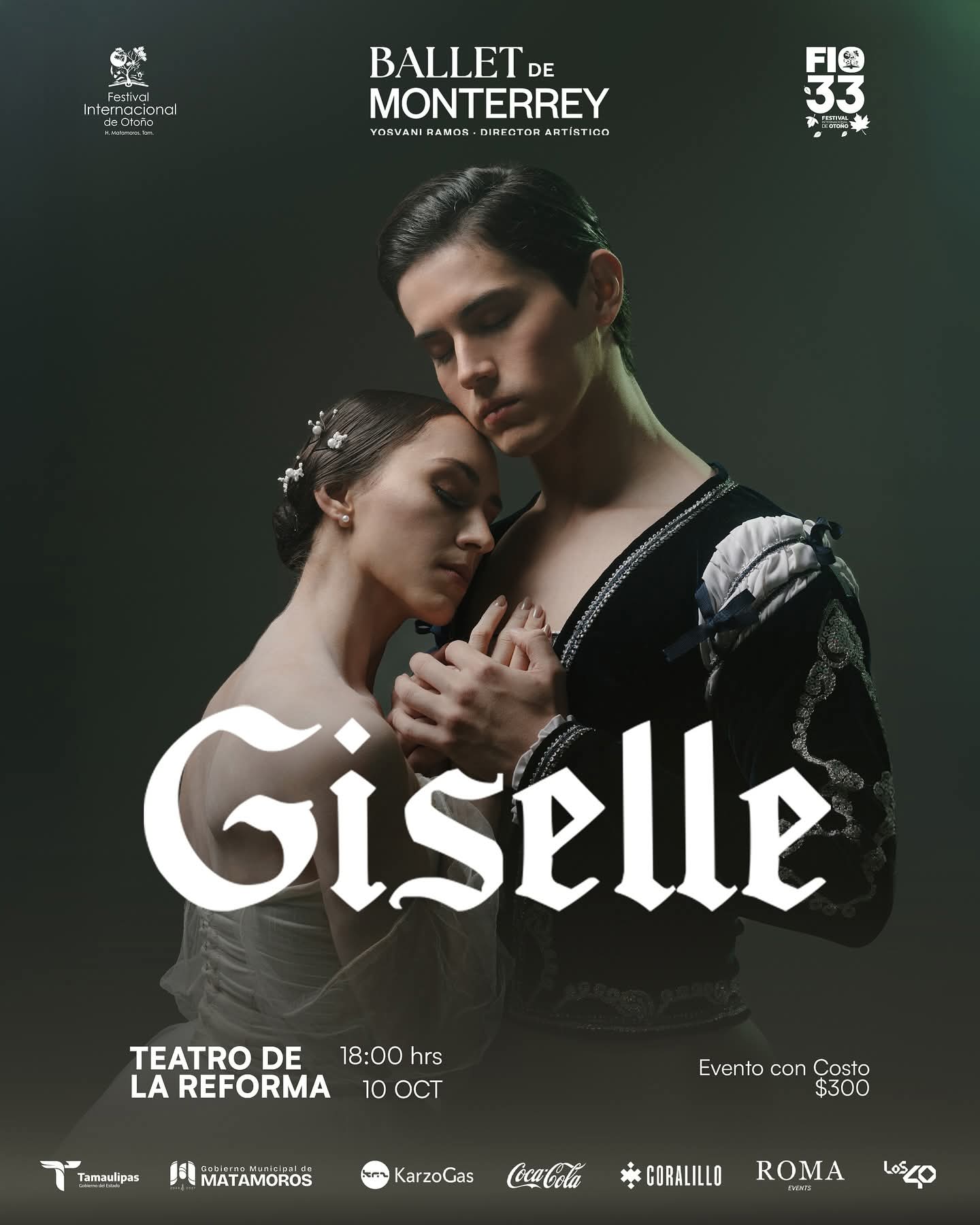 H. Matamoros, Tamaulipas.- El gobierno encabezado por Beto Granados hace una cordial invitación al público en general a disfrutar de una de las obras más emblemáticas del ballet clásico: Giselle, presentada por el reconocido Ballet de Monterrey. Esta función forma parte de la programación del Festival Internacional de Otoño en su edición número 33, una celebración cultural que destaca por su calidad artística y su compromiso con el arte.