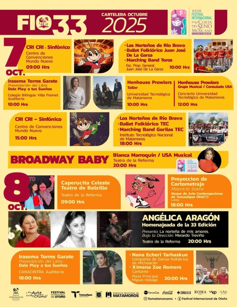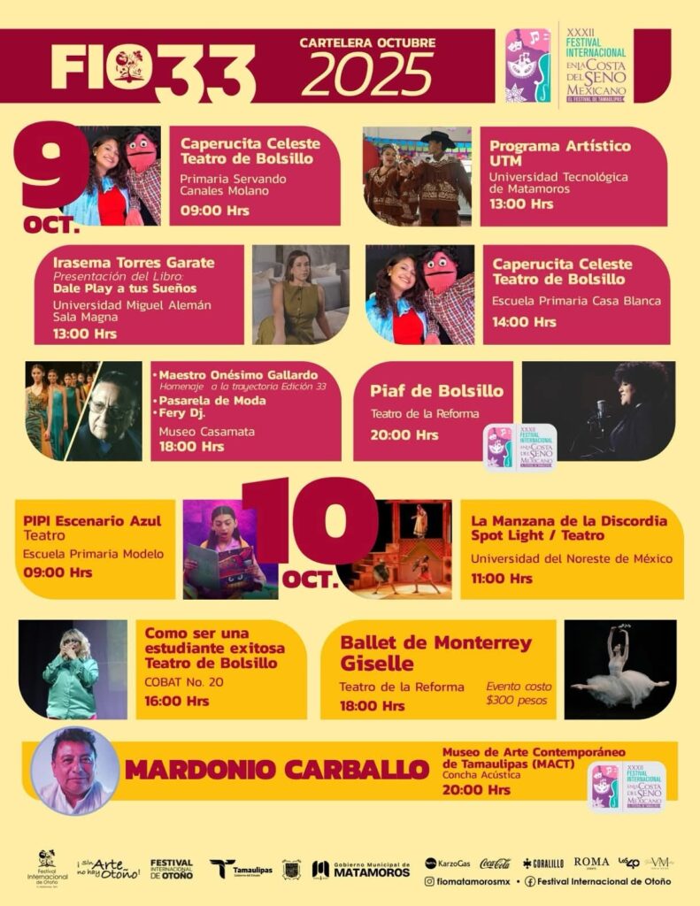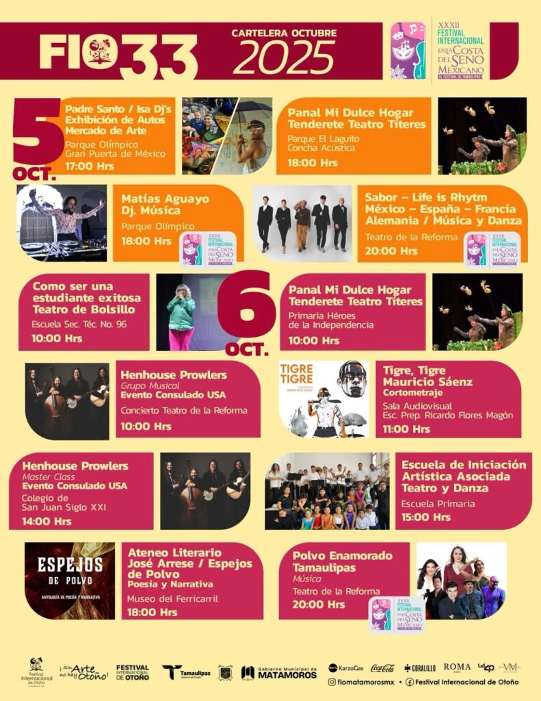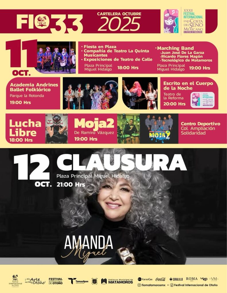 Matamoros, Tam.- El Gobierno de Beto Granados informó que Matamoros se prepara para brillar con la 33ª edición del Festival Internacional de Otoño, que se llevará a cabo del 3 al 12 de octubre en distintos escenarios de la ciudad.