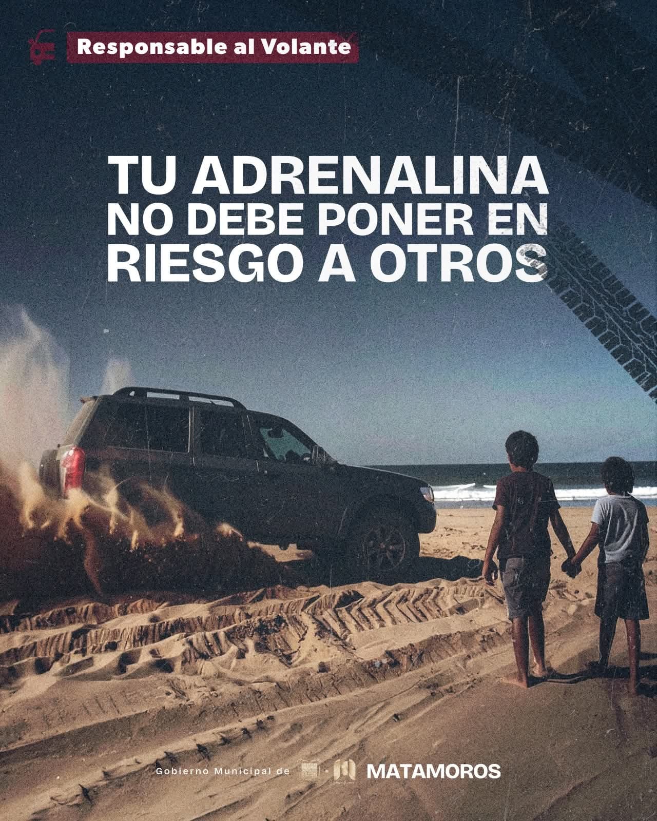 Matamoros, Tam.- El Gobierno de Matamoros que encabeza Beto Granados advirtió que, ya sea en la playa o en la ciudad, el exceso de confianza puede terminar en tragedia. Conducir bajo los efectos del alcohol y realizar maniobras peligrosas pone en riesgo la vida de peatones, familias y niños.