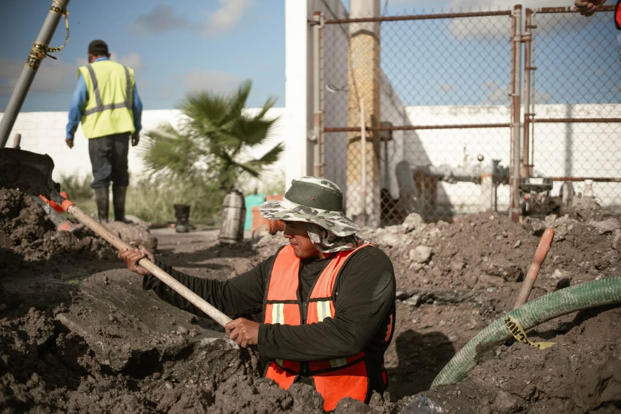 Matamoros, Tam.- El Gobierno de Beto Granados, a través de la Junta de Aguas y Drenaje de Matamoros, continúa trabajando de manera constante para ofrecer servicios públicos eficientes y de calidad a las familias matamorenses. En esta ocasión, se realizaron labores de reparación en una tubería de presión de drenaje sanitario ubicada en la Avenida del Maestro, dentro de la colonia Bertha del Avellano.