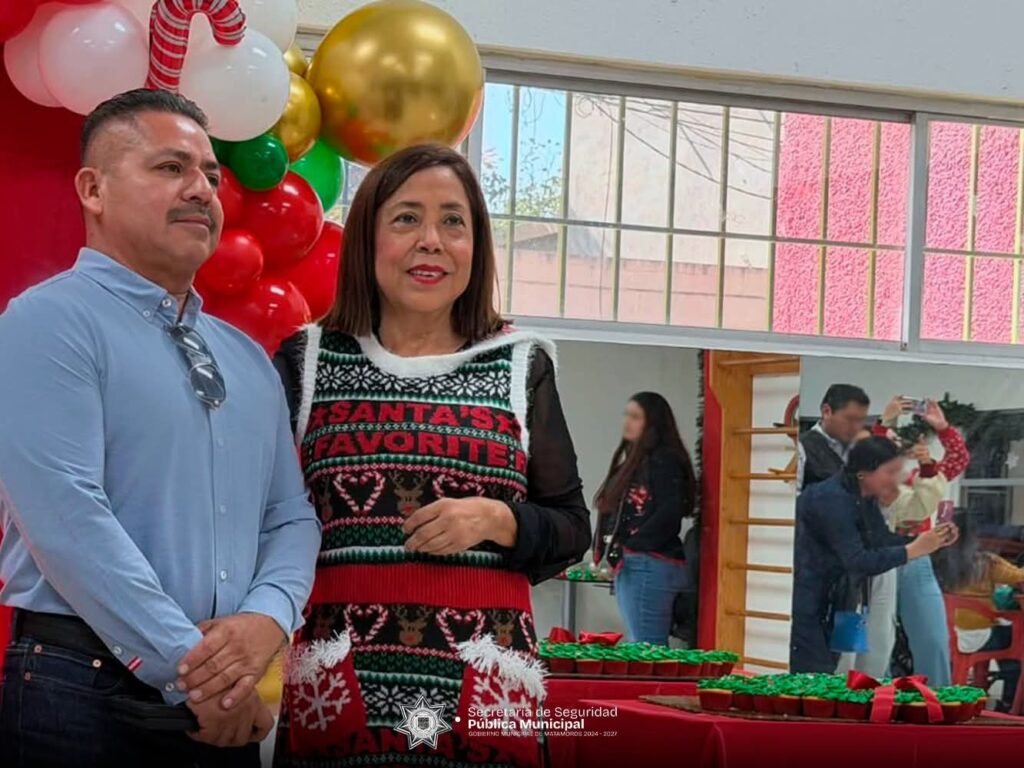 Matamoros, Tam.- Gobierno de Beto Granados, a través de la Dirección de Tránsito y Vialidad, organizó un convivio navideño para las niñas y los niños del Centro de Rehabilitación de Parálisis Cerebral Filemón Garza, con el propósito de compartir momentos de alegría, unión y esperanza en el marco de las celebraciones decembrinas.