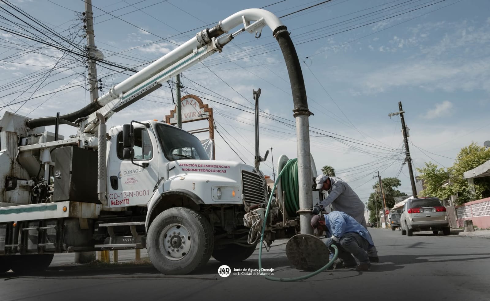 Matamoros, Tam.– El Gobierno de Beto Granados informó que el camión Vactor de CONAGUA continúa realizando recorridos diarios por distintos sectores de la ciudad, llevando a cabo labores de limpieza en líneas de drenaje.