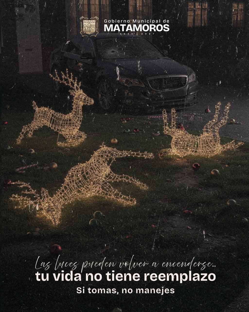 Matamoros, Tam.- En el marco de las celebraciones decembrinas, el Gobierno de Beto Granados exhorta a la ciudadanía a actuar con responsabilidad y conciencia al conducir, recordando que, aunque las luces y los adornos llenan de vida la ciudad, una vida humana no tiene reemplazo y debe ser siempre la prioridad.