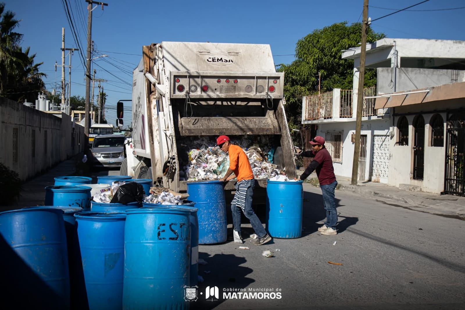 Matamoros, Tam.- El Gobierno de Matamoros, que encabeza Beto Granados, a través de la Dirección de Limpieza Pública, reforzó este viernes las acciones de mantenimiento y recolección de desechos en diversos sectores de la ciudad, con el propósito de mantener en óptimas condiciones las calles, avenidas y espacios comunes.