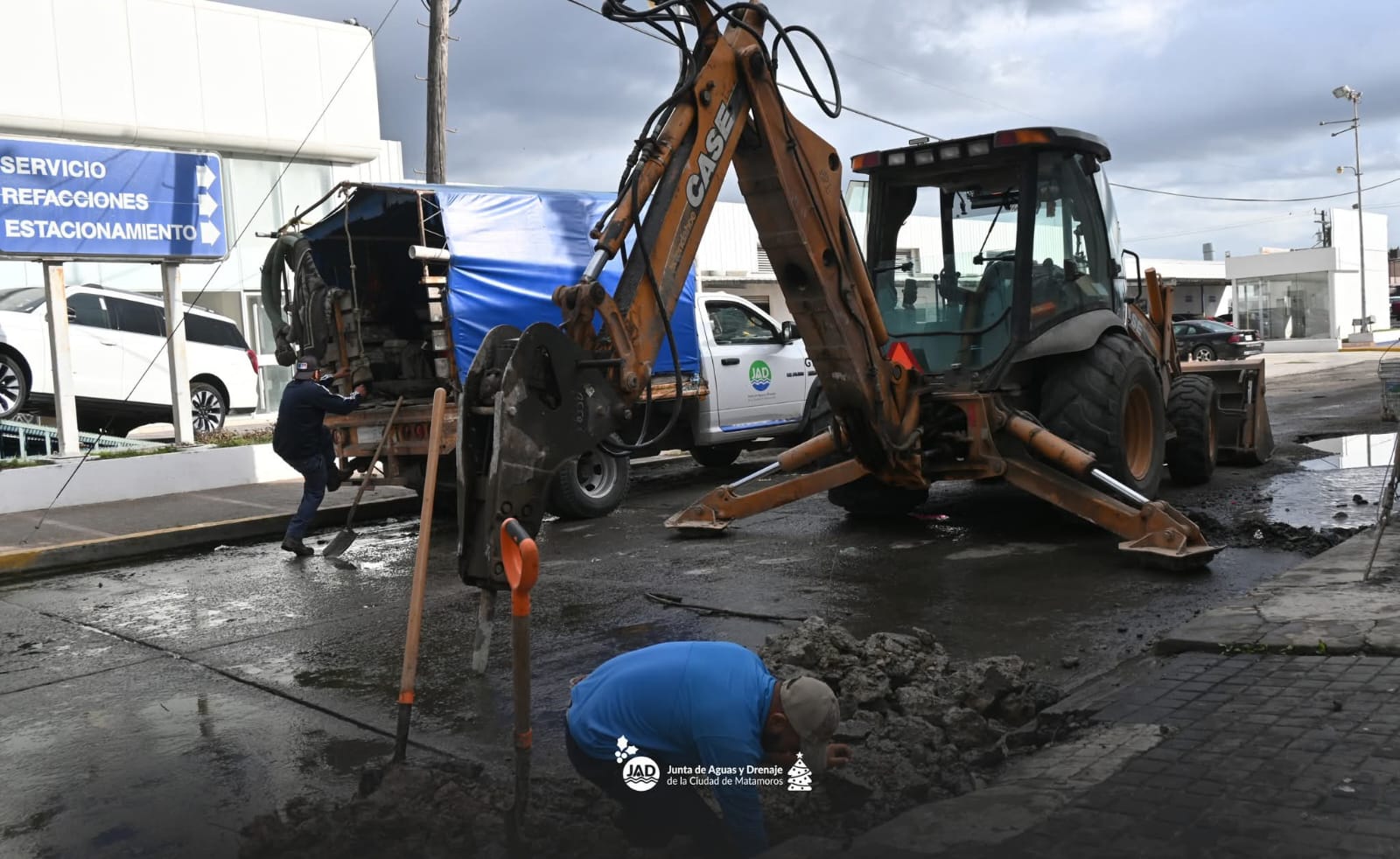 H. Matamoros, Tamaulipas.- En cumplimiento a la instrucción del alcalde de Matamoros, Beto Granados, personal de las cuadrillas de la Junta de Aguas y Drenaje de la ciudad de Matamoros trabaja de manera permanente en la detección y reparación de fugas de agua potable, con el objetivo de mejorar el servicio y cuidar el recurso hídrico en los distintos sectores del municipio.