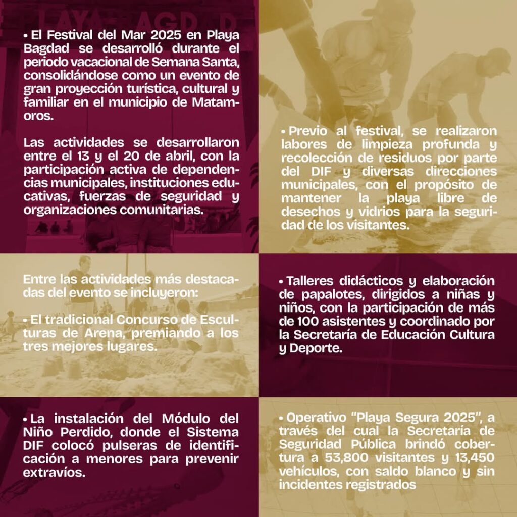 Con estas acciones, el Gobierno de Matamoros busca mejorar la calidad de vida de los ciudadanos y promover la ciudad como un lugar atractivo para invertir y visitar. La promoción del turismo sostenible y el desarrollo económico son prioridades para el Gobierno de Matamoros, que sigue trabajando para consolidar a la ciudad como un destino líder en la región.
