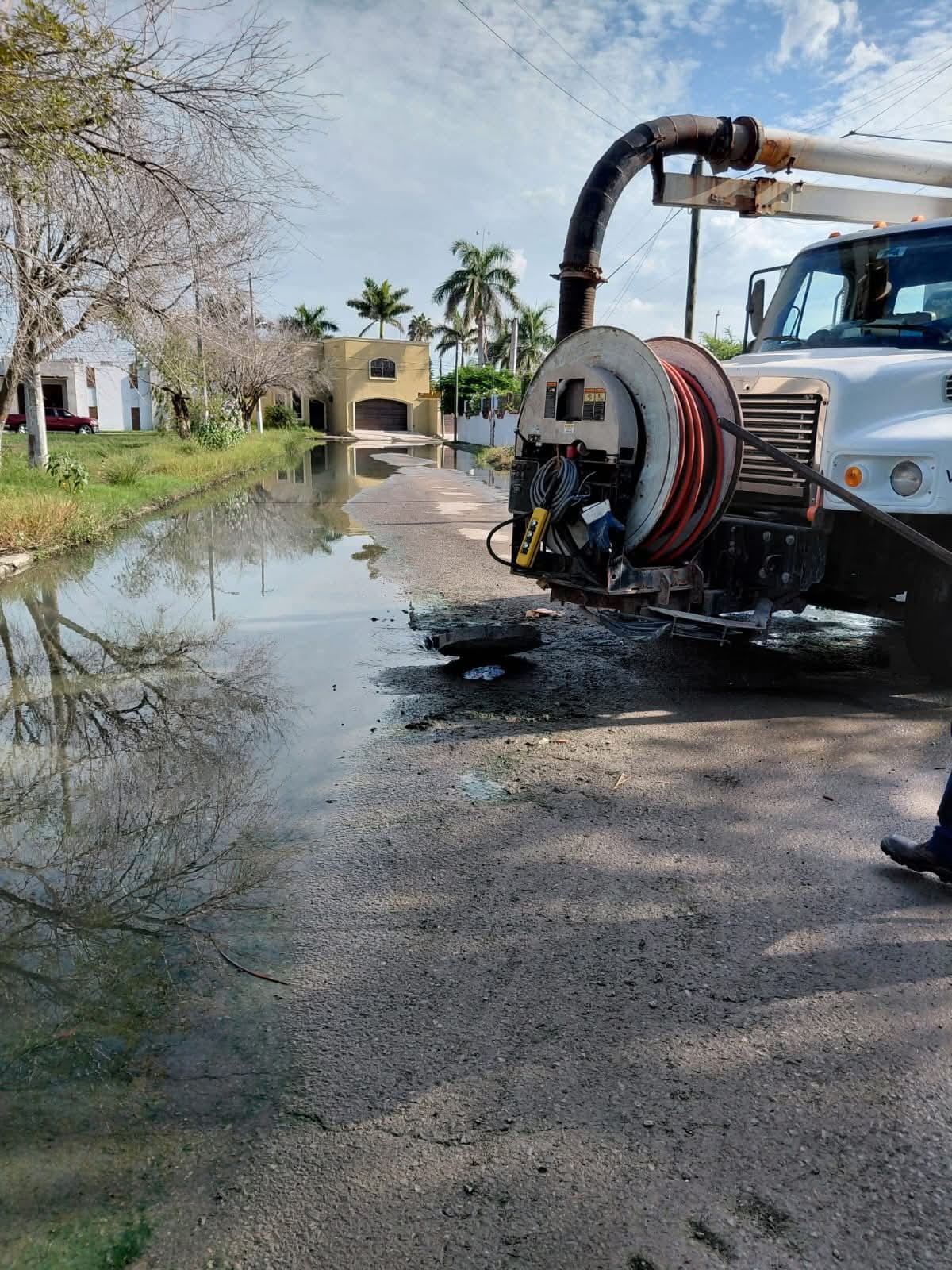 H. Matamoros, Tamaulipas.- El gobierno de Matamoros que preside el alcalde, Beto Granados, a través del personal del área de vactor trabajó en la colonia Magisterial CBTIS.