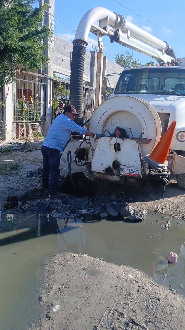 H. Matamoros, Tamaulipas.- Con el respaldo del presidente municipal, Beto Granados, personal de la Junta de Aguas y Drenaje, acudió a la colonia Rodríguez con un camión vactor para realizar labores de limpieza y desazolve en la zona.