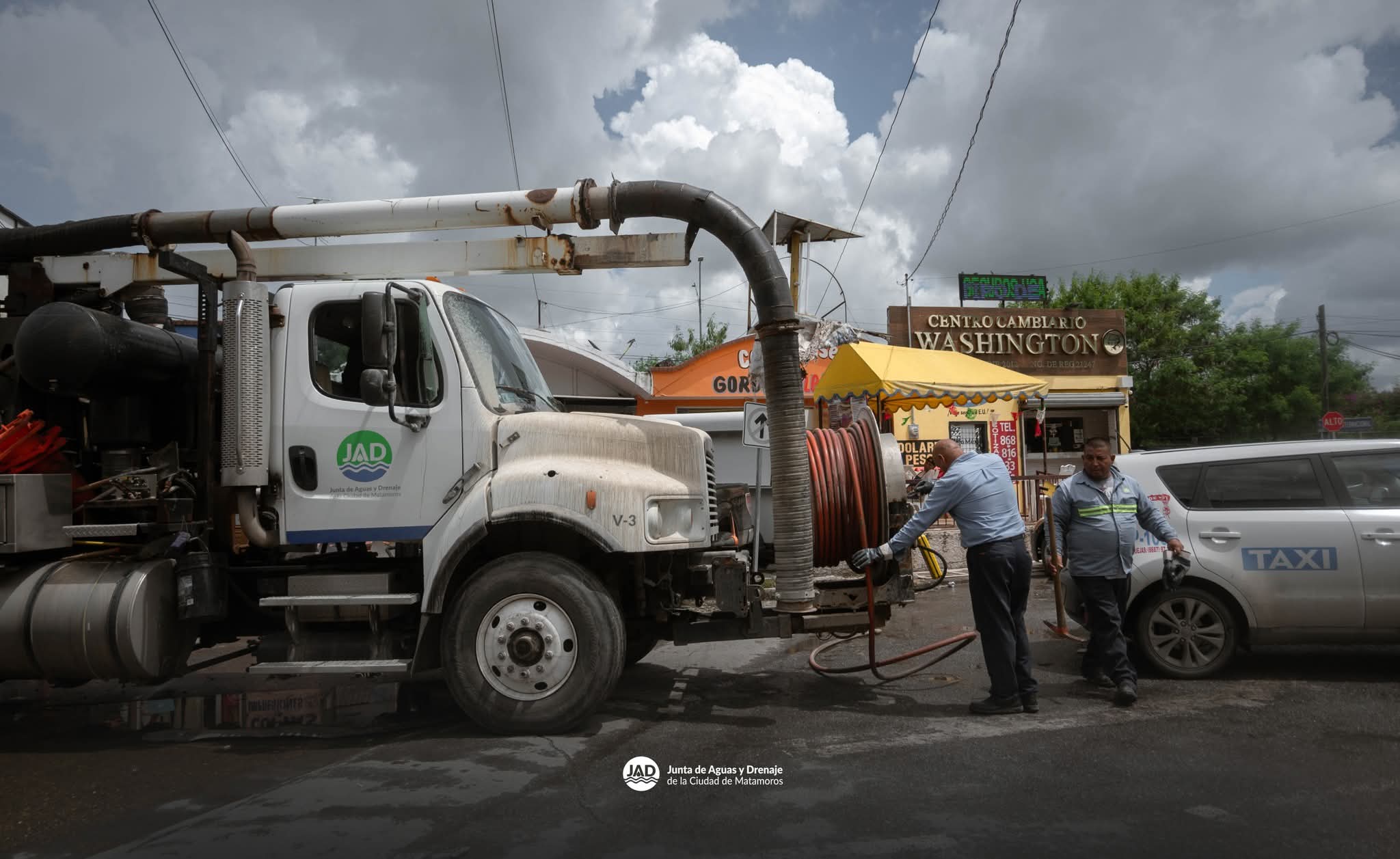 H. Matamoros, Tamaulipas.- El Gobierno Municipal de Matamoros, presidido por el alcalde, Beto Granados, a través de las cuadrillas de la Junta de Aguas y Drenajes, continúa realizando labores de limpieza y desazolve en distintos puntos de la ciudad, con el apoyo del camión vactor.
