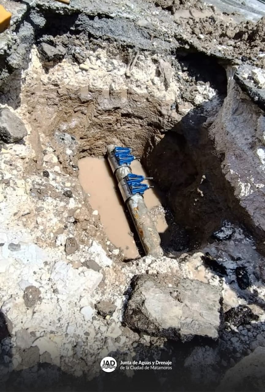 H. Matamoros, Tamaulipas.- El personal del área de cuadrillas de la Junta de Aguas y Drenajes realizó con éxito la reparación de una fuga de agua potable en la colonia Acuario 2001, como parte de los trabajos permanentes de mantenimiento a la red hidráulica del municipio.