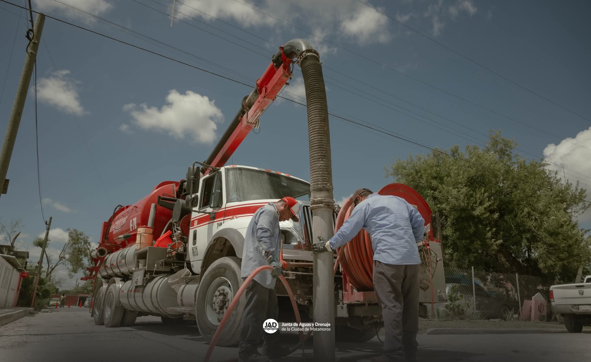 H. Matamoros, Tamaulipas.- Como parte de las acciones para mejorar los servicios públicos y promover un ambiente más saludable, el Gobierno Municipal, a través de la Junta de Aguas y Drenaje de Matamoros, realizó labores de desazolve en la colonia Voluntad y Trabajo. Para ello, se desplegó un camión vactor con el objetivo de atender el problema de aguas residuales que afectaba a los vecinos del sector.