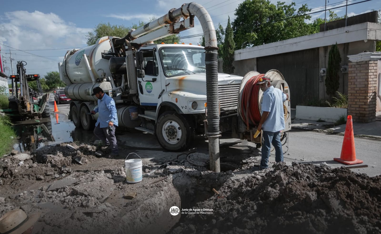 H. Matamoros, Tamaulipas.- El Gobierno Municipal de Matamoros, a través de la Junta de Aguas y Drenaje, realizó trabajos de desazolve en las líneas de drenaje de la calle José López Portillo, en la colonia del mismo nombre.