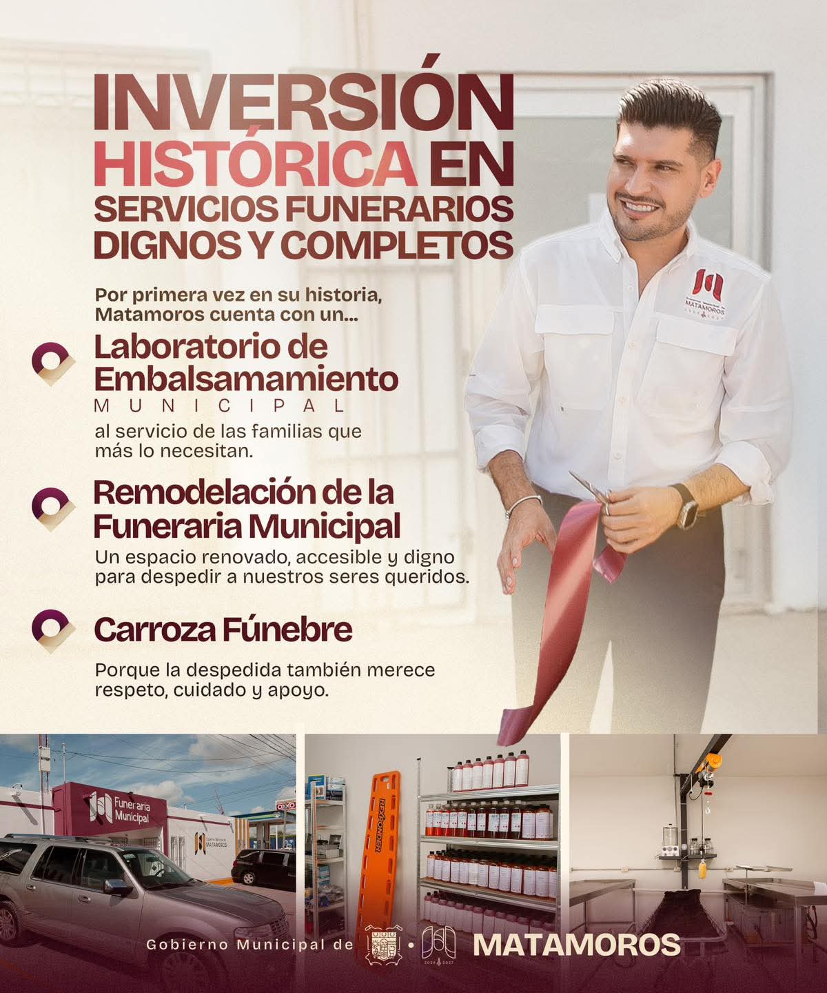 H. Matamoros, Tamaulipas.- En un esfuerzo sin precedentes por dignificar los servicios funerarios en Matamoros, el Gobierno Municipal que preside el alcalde, Beto Granados ha realizado una inversión histórica que marca un antes y un después en esta importante área de atención social. Por primera vez en la historia del municipio, las familias contarán con infraestructura y servicios públicos funerarios que garantizan el respeto, la calidad y la calidez humana en los momentos más difíciles.