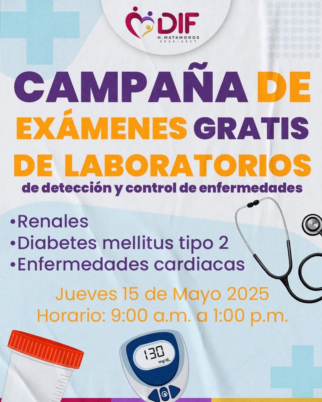 H. Matamoros, Tamaulipas.- El Gobierno municipal, en coordinación con el Sistema para el Desarrollo Integral de la Familia (DIF), reiteró su compromiso con la salud y el bienestar de la población, mediante la realización de una campaña de exámenes de laboratorio gratuitos, dirigida a toda la ciudadanía interesada en conocer y cuidar su estado de salud.