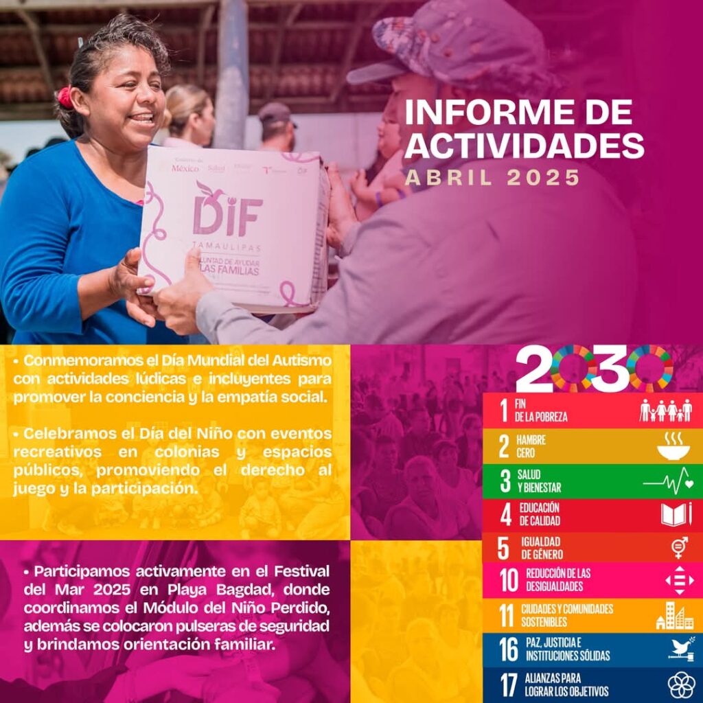H. Matamoros, Tamaulipas.- El Gobierno de Matamoros, que encabeza Beto Granados, informó que el Sistema DIF Matamoros intensificó su trabajo en abril para beneficiar a quienes más lo necesitan. Durante este mes, se acercaron servicios esenciales a niñas, niños, adolescentes, personas con discapacidad, adultos mayores y familias en situación de vulnerabilidad.