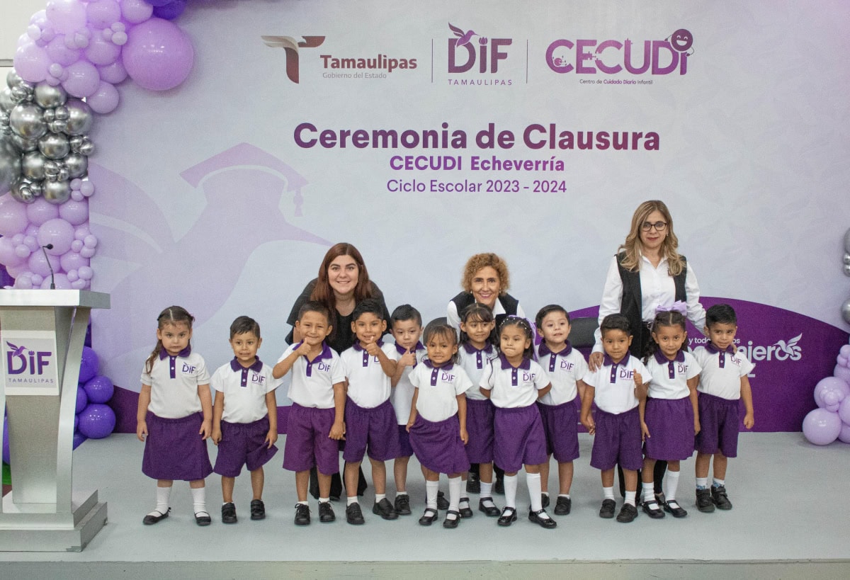 Al término del reciente ciclo escolar y de acuerdo con el calendario oficial de la Secretaría de Educación, 2 mil 924 alumnas y alumnos inscritos en los Centros de Cuidado Diario Infantil (CECUDI) y en los Centros de Atención Infantil Comunitarios (CAIC) del Sistema DIF Tamaulipas que preside la doctora María de Villarreal, culminaron su instrucción preescolar.