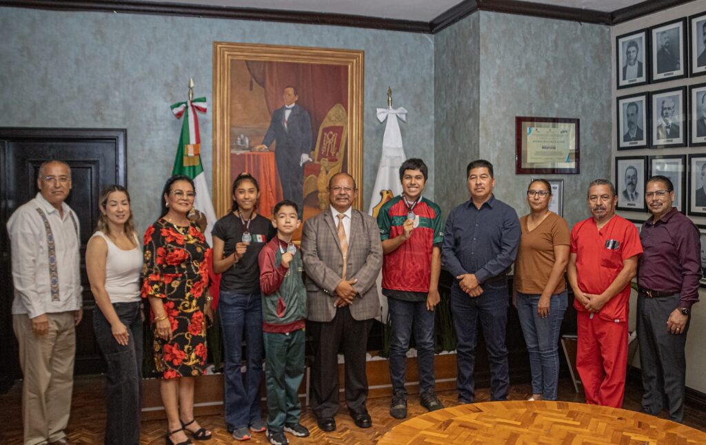 La medalla conmemorativa del Gobierno Municipal también fue colocada al niño Gael Torres Vázquez, quien a su corta edad también es campeón estatal de Tae Kwon Do; ambos medallistas son entrenados por Mauro Orduña, quien hizo una breve explicación al Presidente Municipal de los logros obtenidos por los jóvenes deportistas.