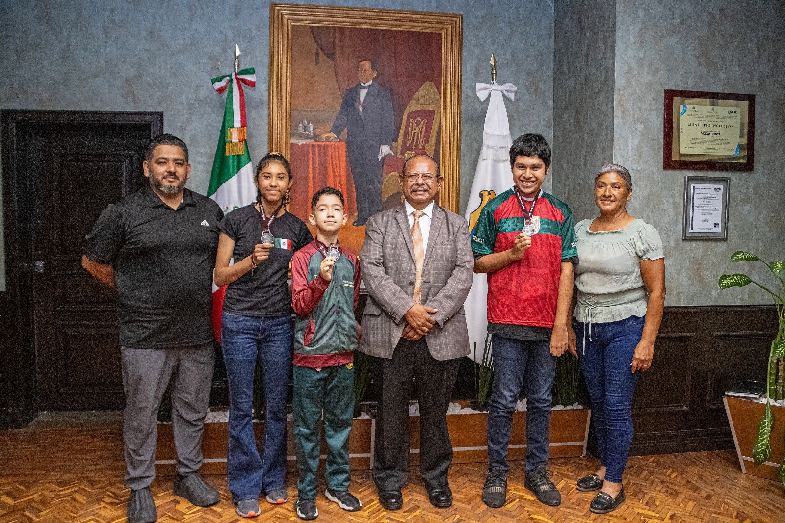 El Alcalde Dr. Rubén Sauceda Lumbreras impuso medallas conmemorativas del Gobierno de Matamoros a niños y jóvenes atletas, quienes con sus destacadas participaciones a nivel local, regional, nacional e inclusive a nivel mundial ponen en alto el nombre de esta frontera.