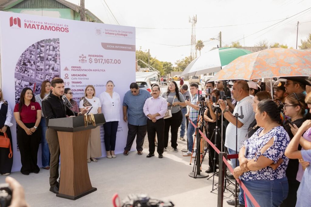 H. Matamoros, Tamaulipas.- El Presidente Municipal de Matamoros, Beto Granados, encabezó la inauguración de la calle Martínez en la colonia Guillermo Guajardo, una obra que representa un avance significativo en materia de movilidad, seguridad y calidad de vida para las familias del sector.