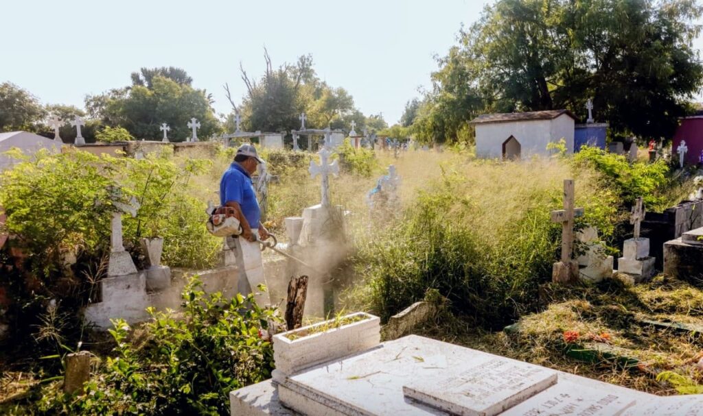 Se realizan trabajos de limpieza, retiro de maleza, escombro y basura, mejoramiento de accesos y rehabilitación del alumbrado público en los panteones municipales, toda vez que se han mantenido bastante descuidados.