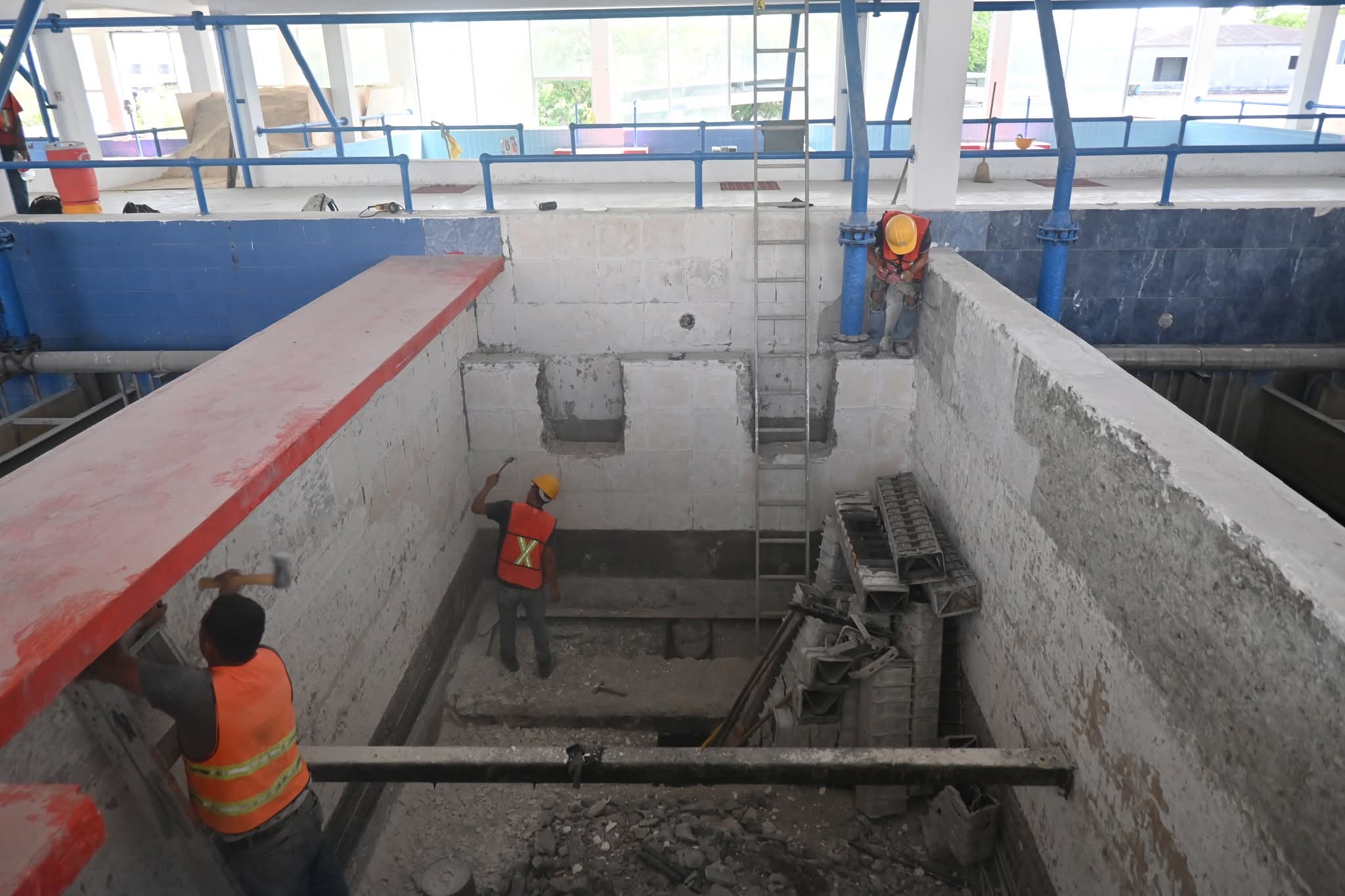H. Matamoros, Tamaulipas.- Los trabajos de rehabilitación en la planta potabilizadora 1 avanzan de manera significativa, particularmente en el área de filtración, donde se lleva a cabo el reemplazo de fondos y la colocación de nuevo material filtrante.
