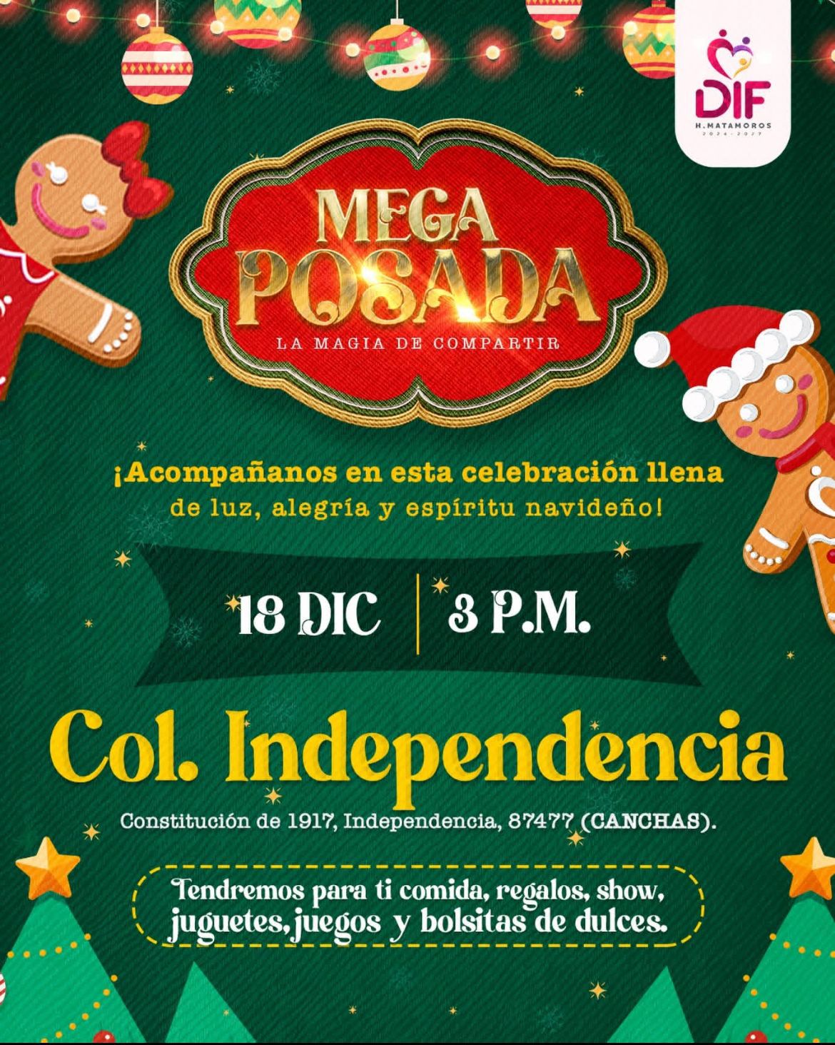 Promoviendo la convivencia y la unión familiar, el Sistema DIF Matamoros hace una cordial invitación a la sociedad a disfrutar de la navidad a través de la “La Fábrica de Santa”, una celebración que busca llevar amor y alegría a niñas y niños en compañía de sus seres queridos.