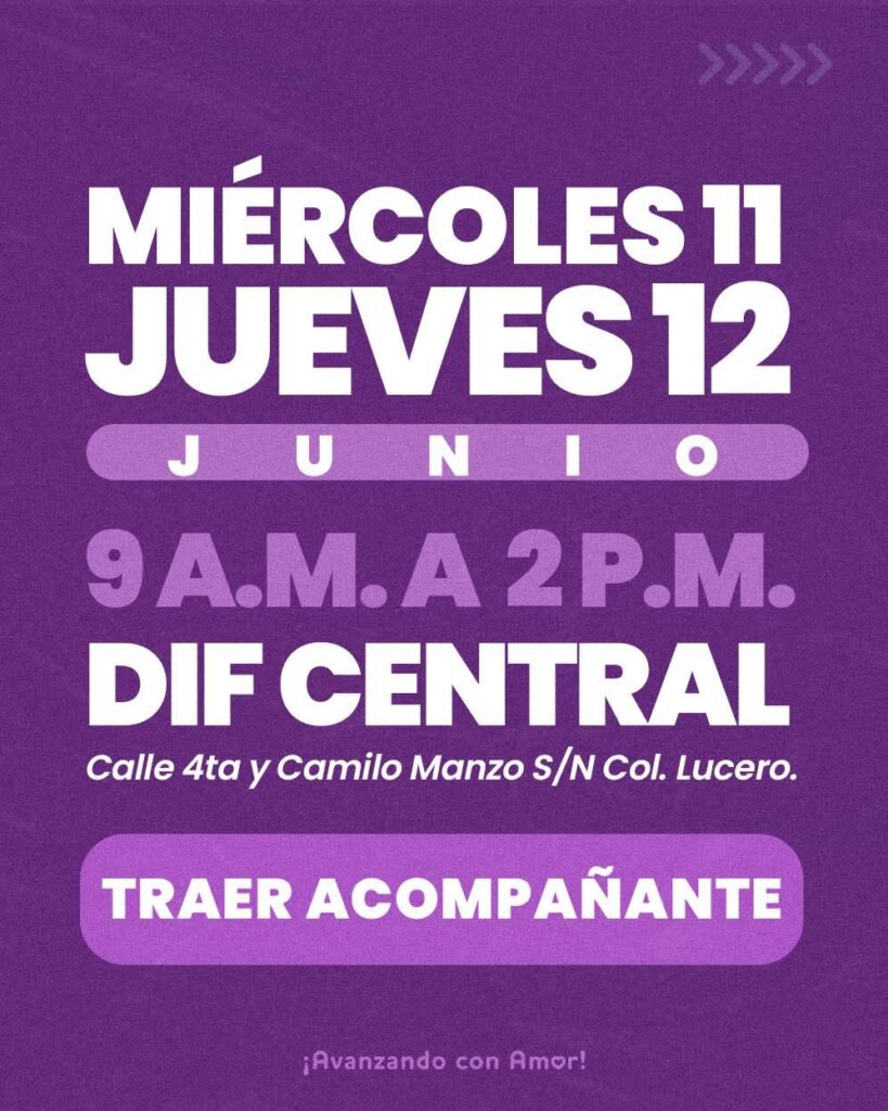 Las valoraciones se realizarán los días miércoles 11 y jueves 12 de junio en las instalaciones de la oficina Central, ubicada en Calle 4ta y Camilo Manzo s/n Col. Lucero, atendiendo a los pacientes de 09:00 de la mañana a 02:00 de la tarde.