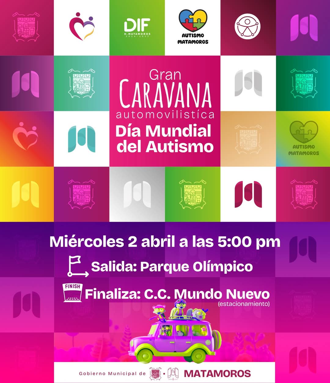 H. Matamoros, Tamaulipas.- Con el objetivo de promover la conciencia, aceptación e inclusión de las personas con autismo, el gobierno municipal encabezado por el alcalde Beto Granados, a través del Sistema para el Desarrollo y Protección de los Derechos de las Personas con Discapacidad (Siproddis), invita a la comunidad a participar en la Gran Caravana Automovilística por la Neurodiversidad.