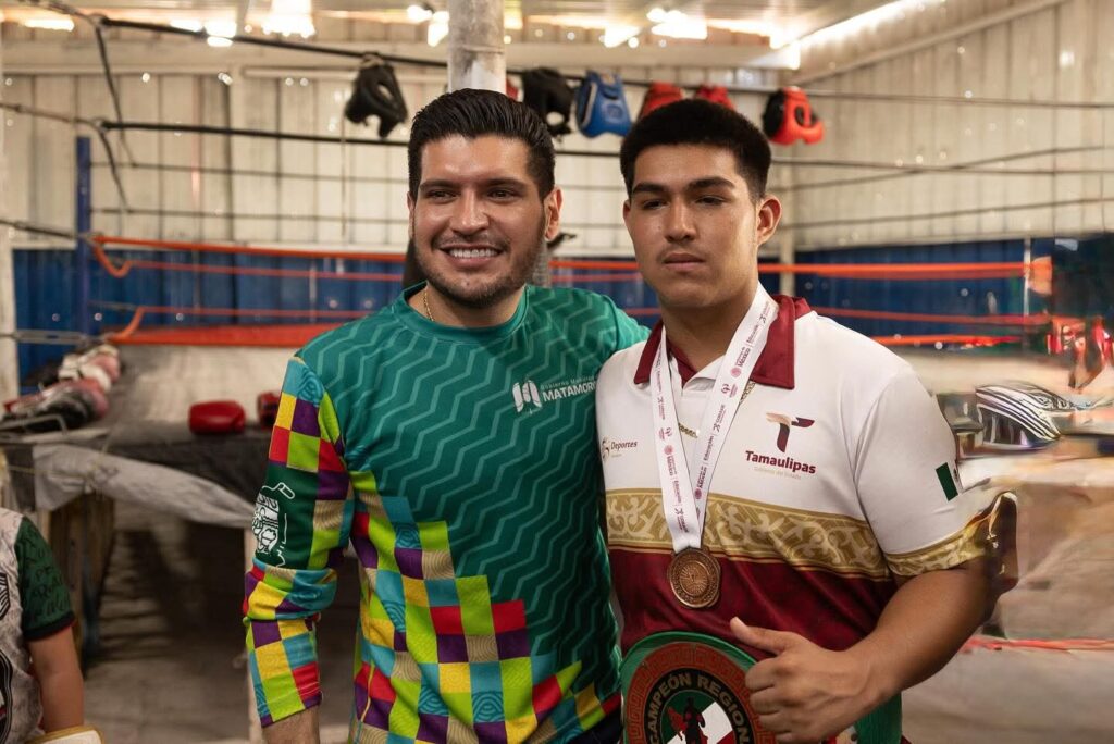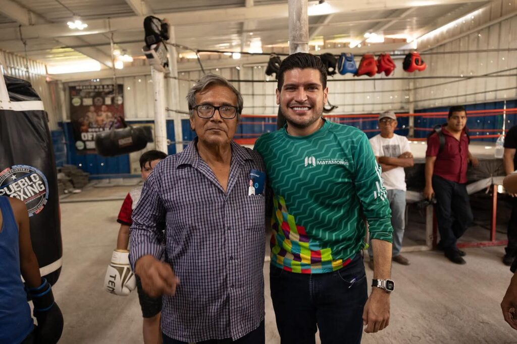 Con mucho entusiasmo, el alcalde visitó las instalaciones del Mentados Boxing Club, donde reafirmó su compromiso de respaldar a quienes practican deporte, al reconocer que esta disciplina abre oportunidades, aleja de los vicios y fortalece a la juventud matamorense.
