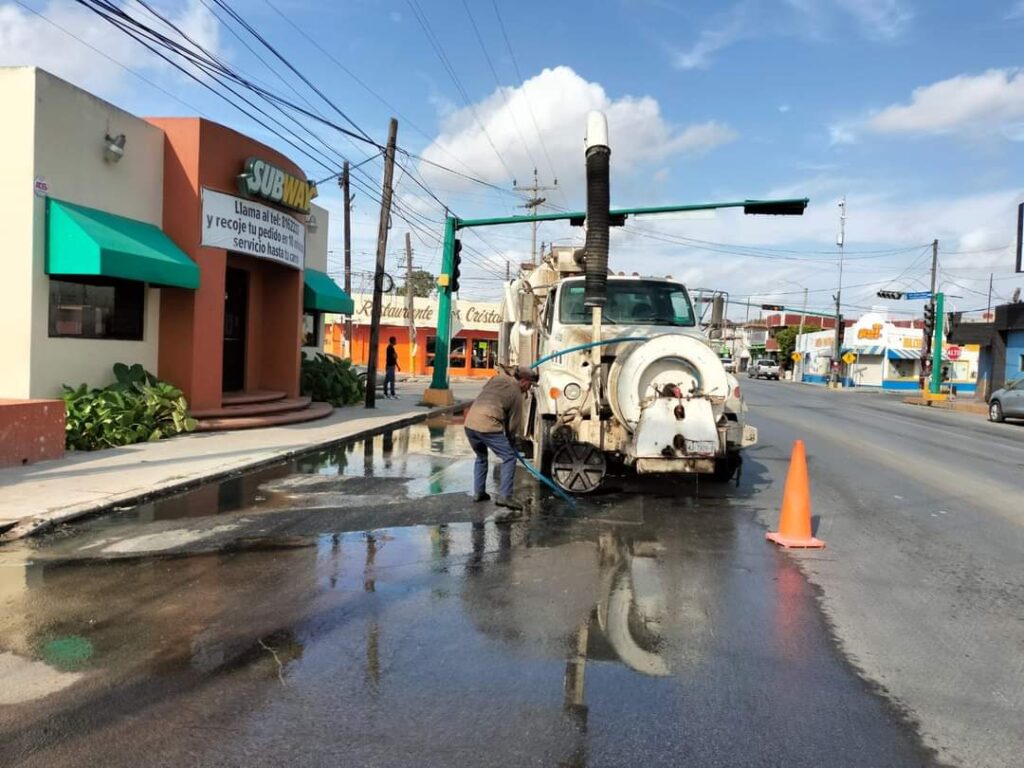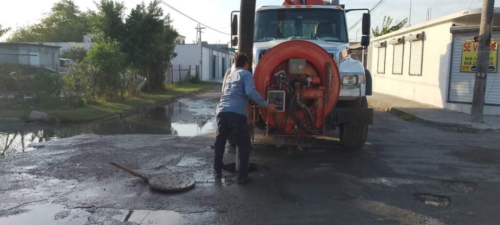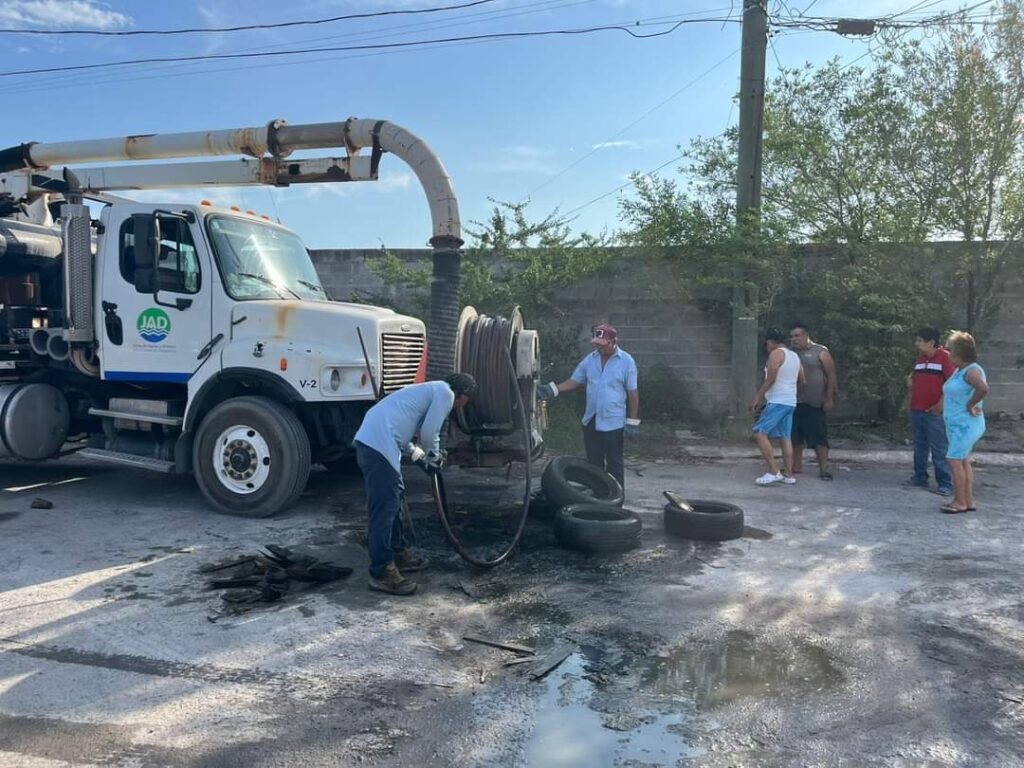 Este lunes, los camiones Vactor de la JAD se encuentran laborando en las colonias Jardín, Zona Centro, Diagonal, Emilio Portes Gil, Fundadores, Valle Real, Canales y Miguel Barragán, realizando labores de limpieza profunda en alcantarillas y desagües para evitar acumulaciones de agua y prevenir posibles inundaciones.
