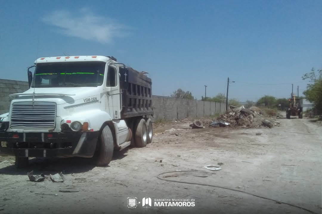 H. Matamoros, Tamaulipas.- El Gobierno de Matamoros, presidido por Beto Granados, informó que desde el día martes 13, se está llevando a cabo la limpieza de un área utilizada como basurero clandestino en la colonia Bienestar. Esta acción busca mejorar la imagen urbana y la calidad de vida de los habitantes de la zona.