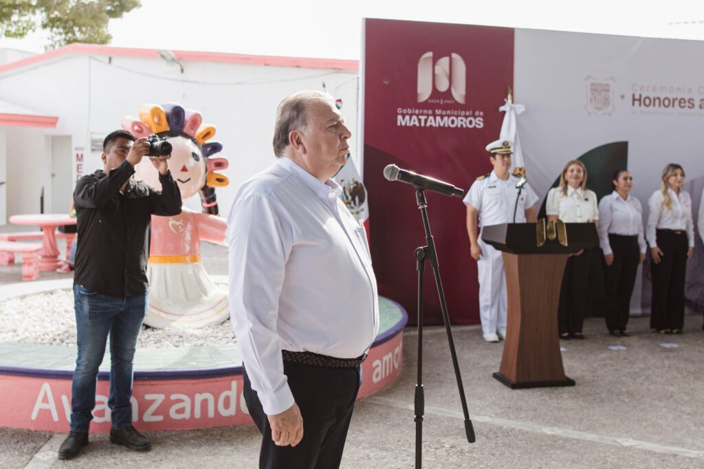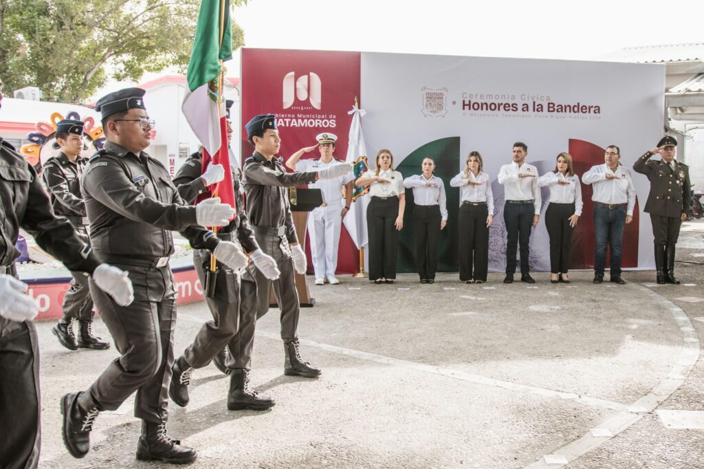 Durante esta ceremonia se contó con la presencia de la Escolta del Pentatlón Cuartel Infantería de Marina, bajo los acordes de la Banda de Música Municipal, sumando a estas acciones que rinden homenaje a nuestro Emblema Nacional y a al Escudo de Armas de Tamaulipas. Así mismo, la dirección del protocolo estuvo a cargo del Sistema DIF Matamoros.
