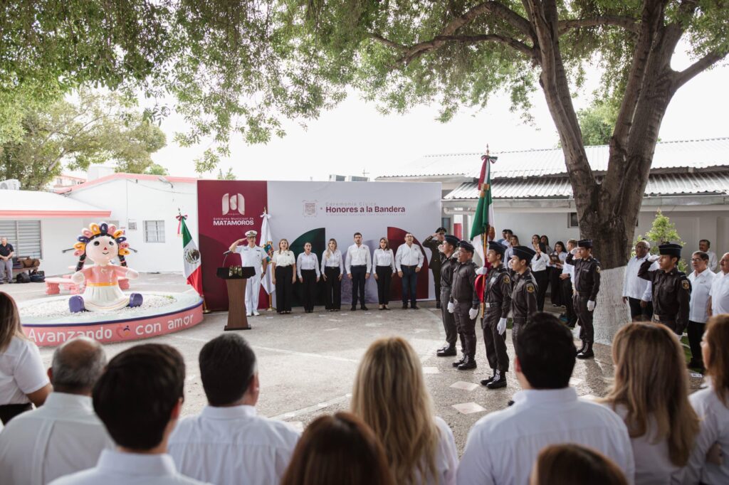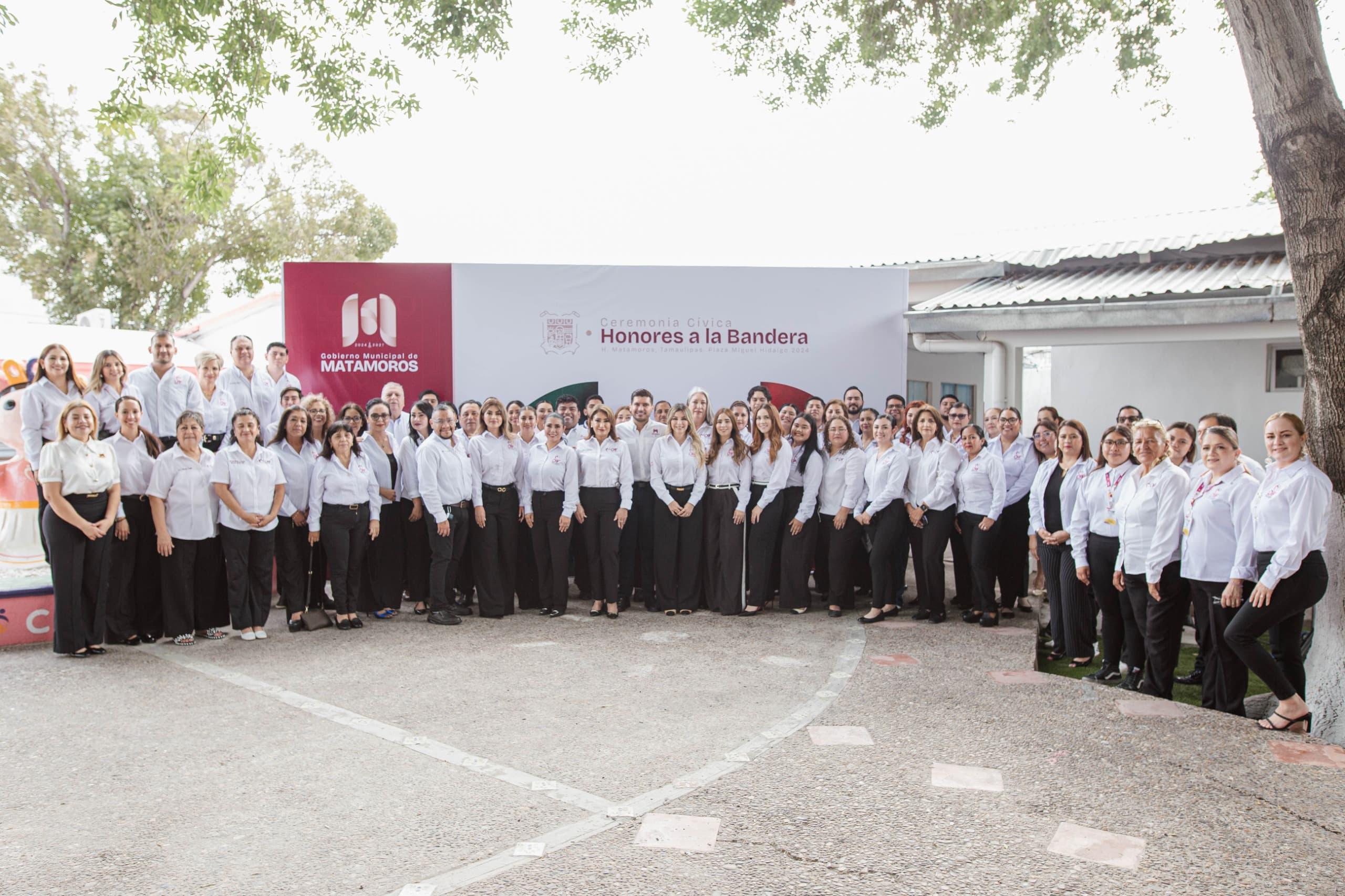 El Sistema DIF Matamoros en coordinación con el Gobierno Municipal, llevaron a cabo este lunes los honores a la bandera en las instalaciones de este organismo con la finalidad de promover entre las dependencias de gobierno los valores cívicos, así como la responsabilidad social como servidores públicos.