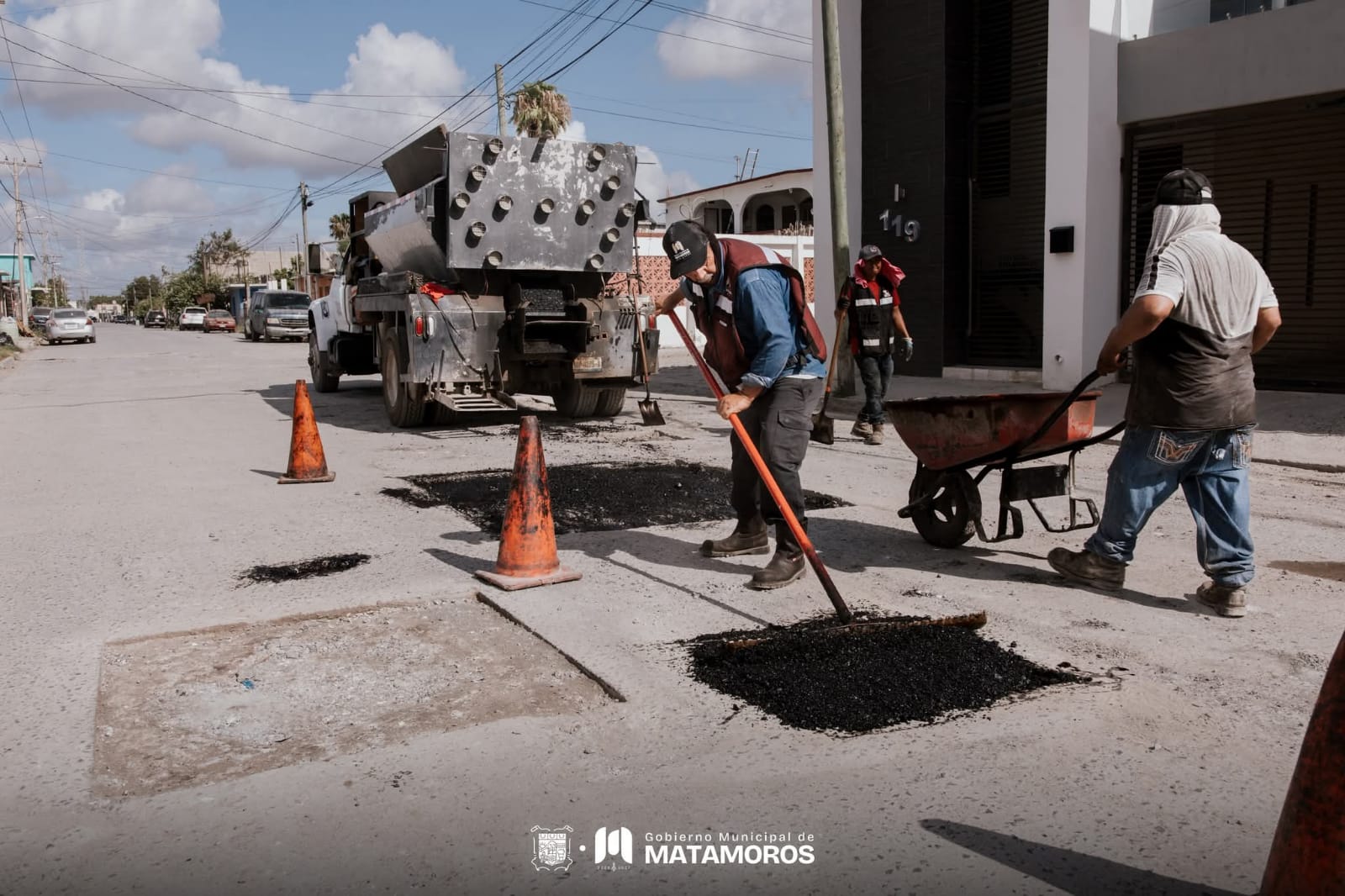 H. Matamoros. Tam.- El Gobierno de Matamoros que preside Beto Granados informó que continúan las acciones de mejora en las vialidades como parte del programa Calle a Calle, el cual busca rehabilitar una a una las calles de nuestra ciudad. En esta ocasión, se están realizando trabajos de bacheo en la colonia Voluntad y Trabajo, atendiendo una de las demandas más sentidas de la población.