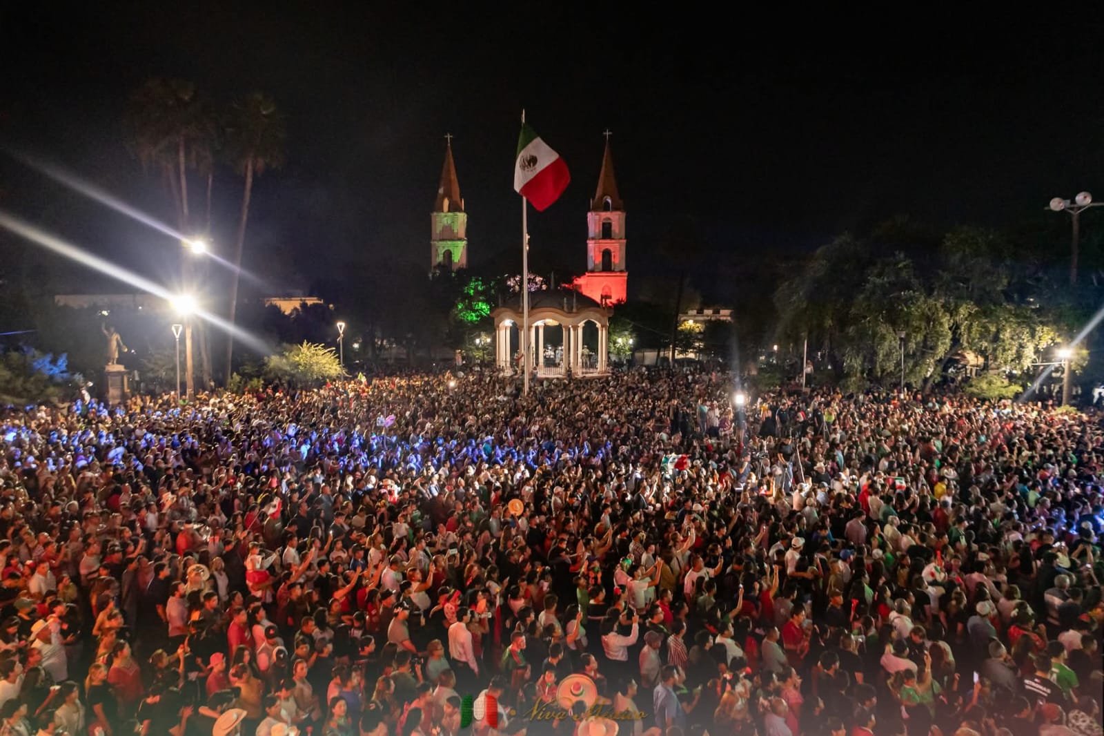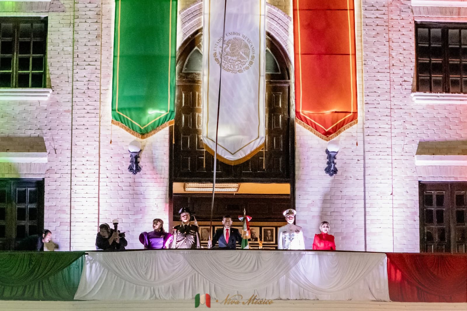 H. Matamoros, Tamaulipas.- La noche del 15 de septiembre, el Presidente Municipal, Beto Granados, encabezó la ceremonia del Grito de Independencia en la Plaza Principal de Matamoros, ante más de diez mil personas, enmarcada por un ambiente de unidad y orgullo nacional.