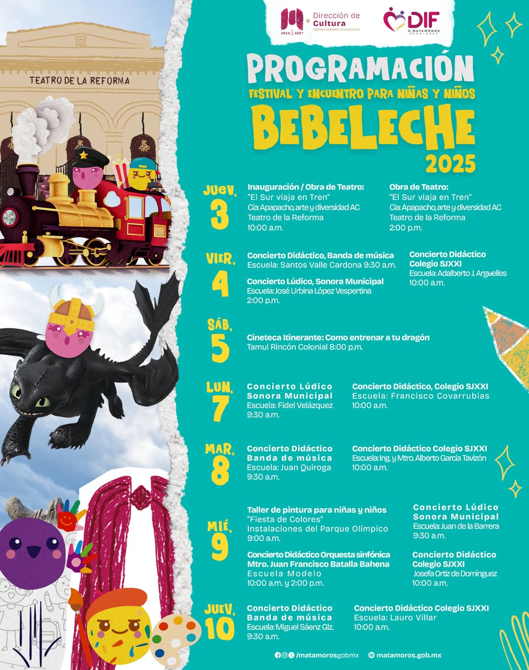 H. Matamoros, Tamaulipss.— El Gobierno Municipal, encabezado por el alcalde Beto Granados, invita a todas las familias a ser parte del festival Bebeleche 2025, un evento especialmente diseñado para celebrar la infancia con actividades llenas de cultura, arte y entretenimiento.