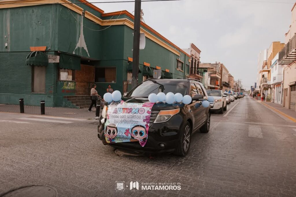 H. Matamoros, Tamaulipas.- El Gobierno Municipal de Matamoros, que preside Beto Granados, se sumó a la celebración del Día Mundial del Autismo con una significativa caravana automovilística por la Neurodiversidad.