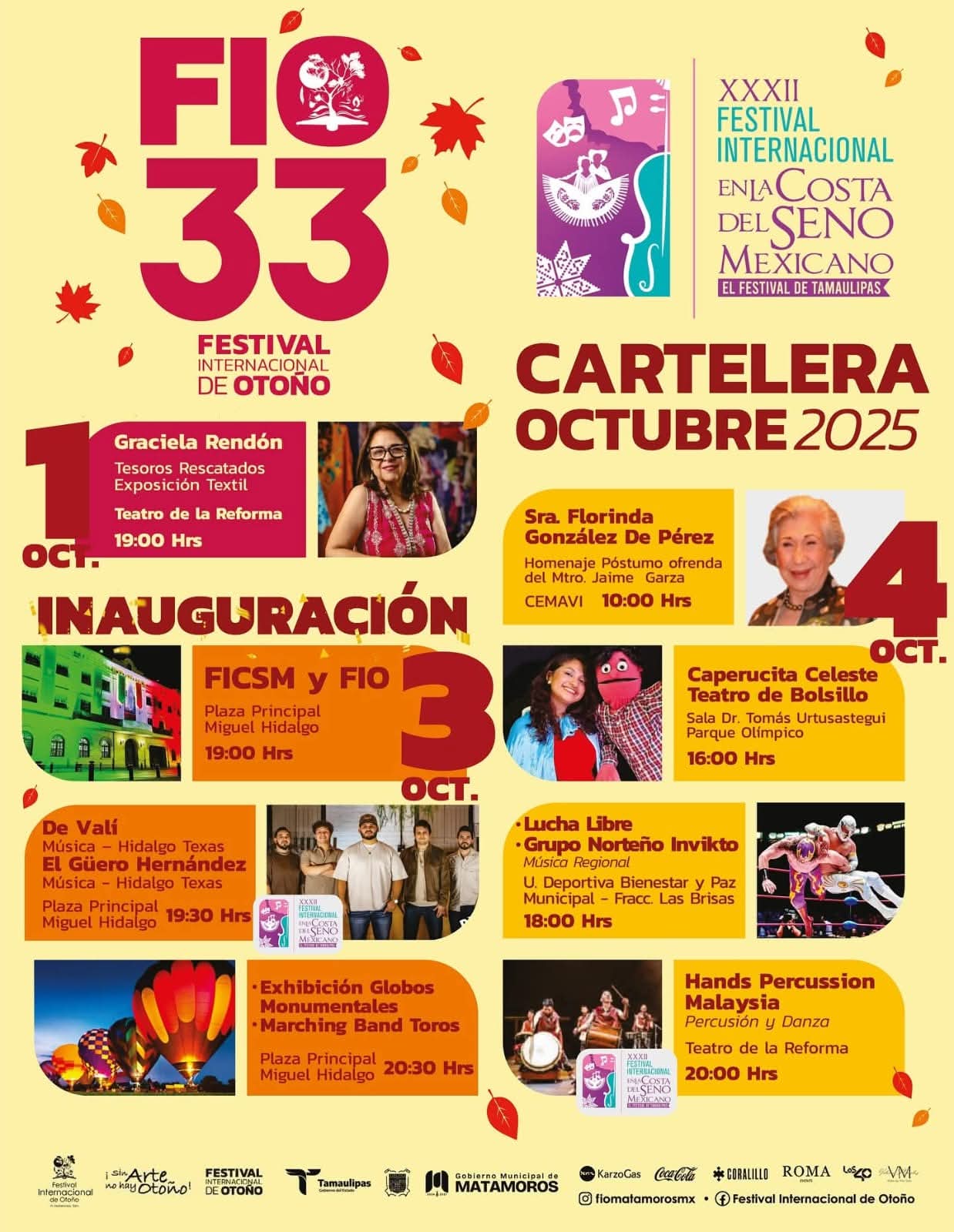 H. Matamoros, Tamaulipas.- El alcalde Beto Granados invita a toda la comunidad a vivir la Edición 33 del Festival Internacional de Otoño, una de las celebraciones artísticas y culturales más representativas de nuestra ciudad, que fortalece la identidad y proyecta el talento de Matamoros hacia el mundo.