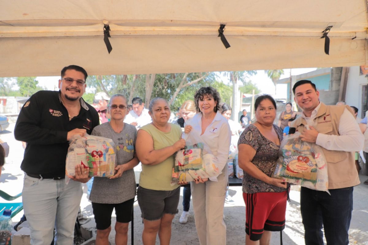 Continuando con la gira de trabajo por la frontera, la secretaria de SEBIEN, Silvia Casas realizó la entrega de paquetes alimentarios en la Colonia Industrial de Reynosa.