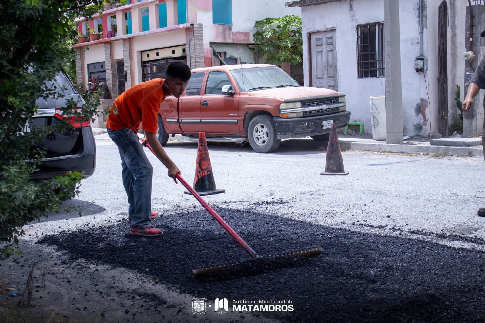 H. Matamoros, Tamaulipas.- El gobierno municipal de Matamoros continúa fortaleciendo su compromiso con la ciudadanía al realizar trabajos de mejoramiento vial en distintas colonias de la ciudad. Este jueves, cuadrillas municipales atendieron las colonias Modelo, Puerto Rico, Integración Familiar, Alberto Carrera Torres, Los Portales y el Fraccionamiento Victoria, priorizando las necesidades específicas de cada zona.